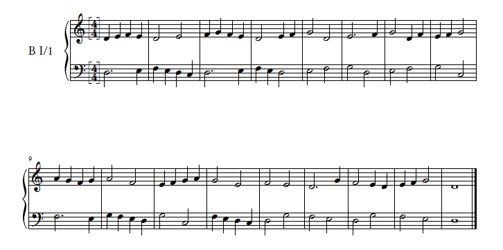 Sing and play the piece. Compare it to speech. In order to emphasize the ability of expression of music interrogatory and answering verses have been put to the respective sections of the melody. It is recommended that the piece be sung by two pupils (or two groups of pupils) alternatively before practising it.