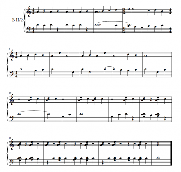 In B II/2, after first introducing the musical material, Bartók develops small-scale clusters, a technique the composers applies also in other pieces of Mikrokosmos in ever-changing variations.