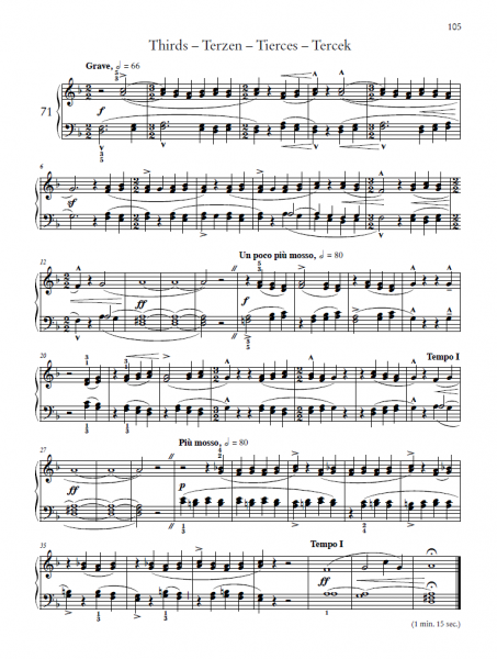 No. 71 (Thirds) is slightly longer in the special version for Péter Bartók than in the published version. Bartók here wrote additional crescendo marks as a dynamic preparation for the subsequent accents.